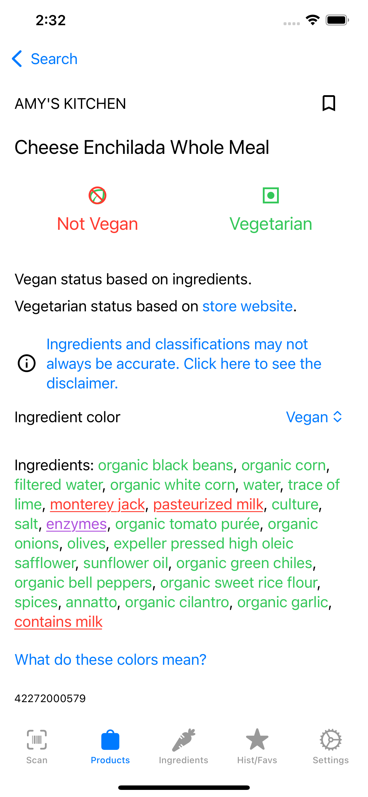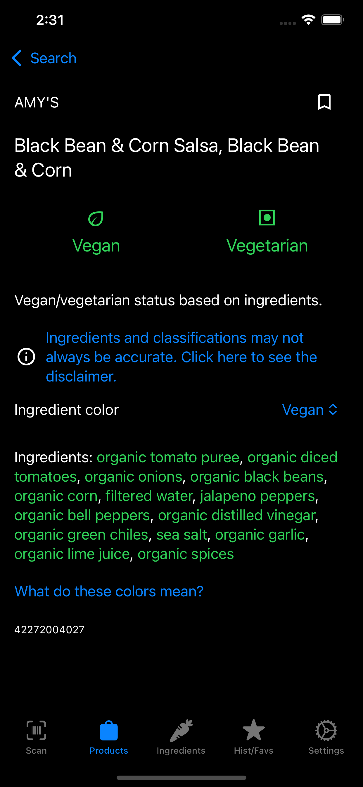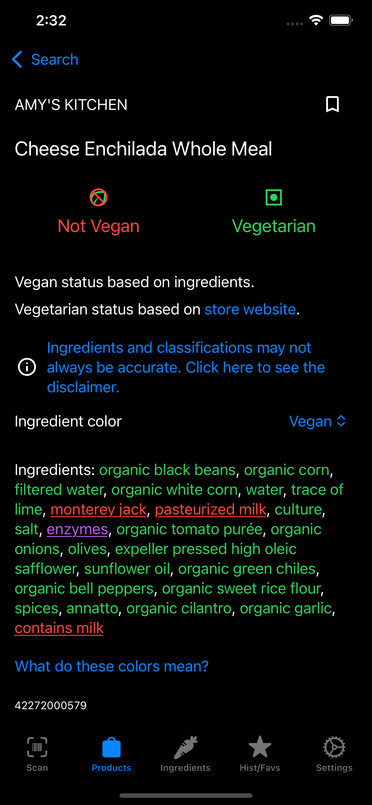 Vegandex is an Android and iOS app that allows you to scan barcodes and search products to determine if they are vegan.