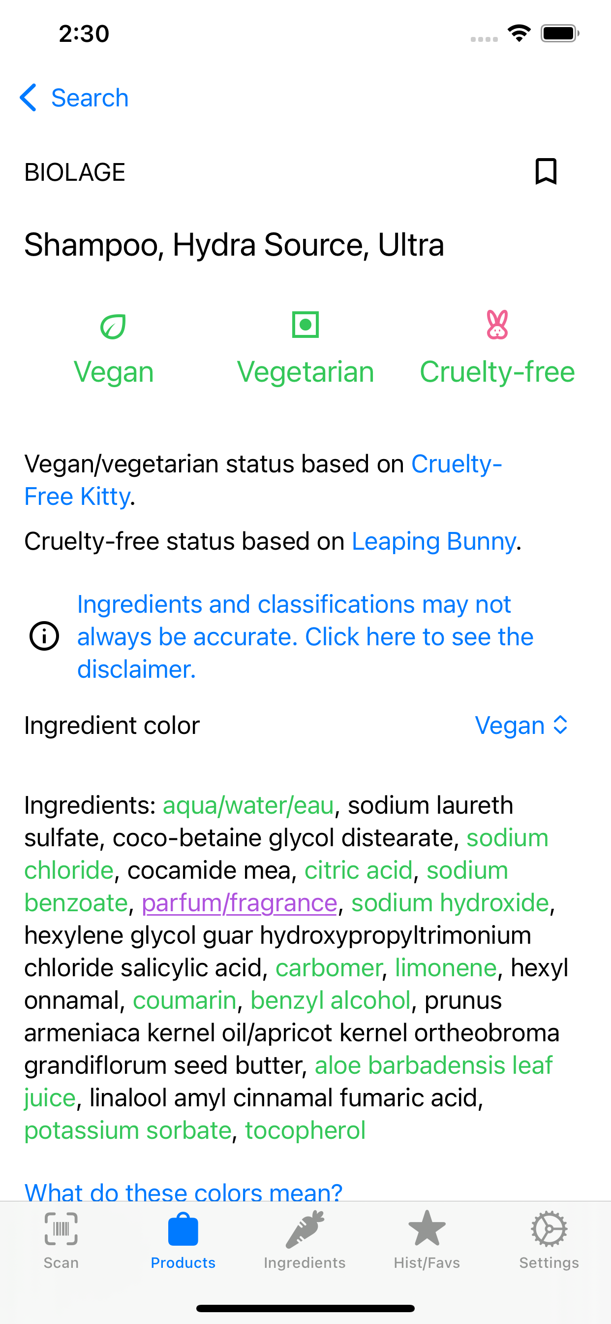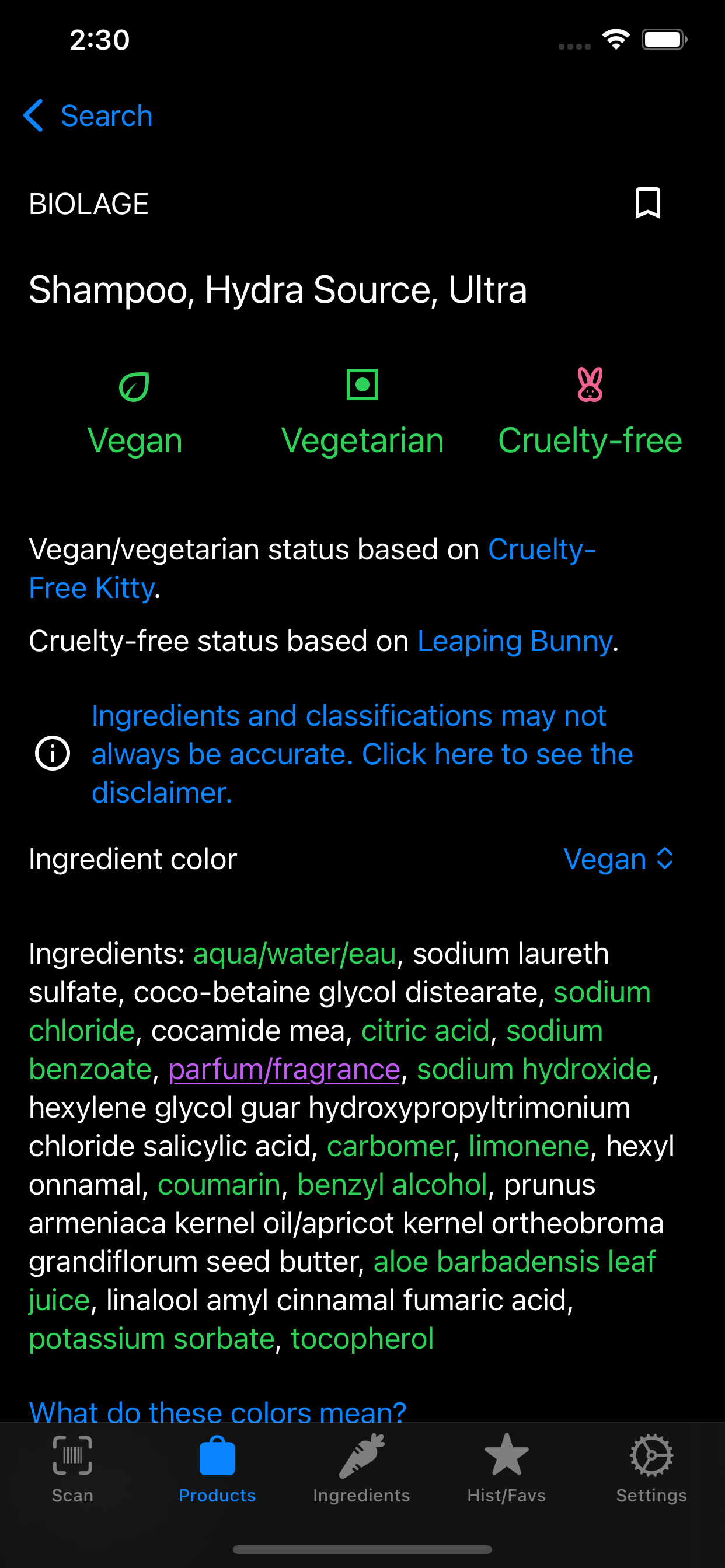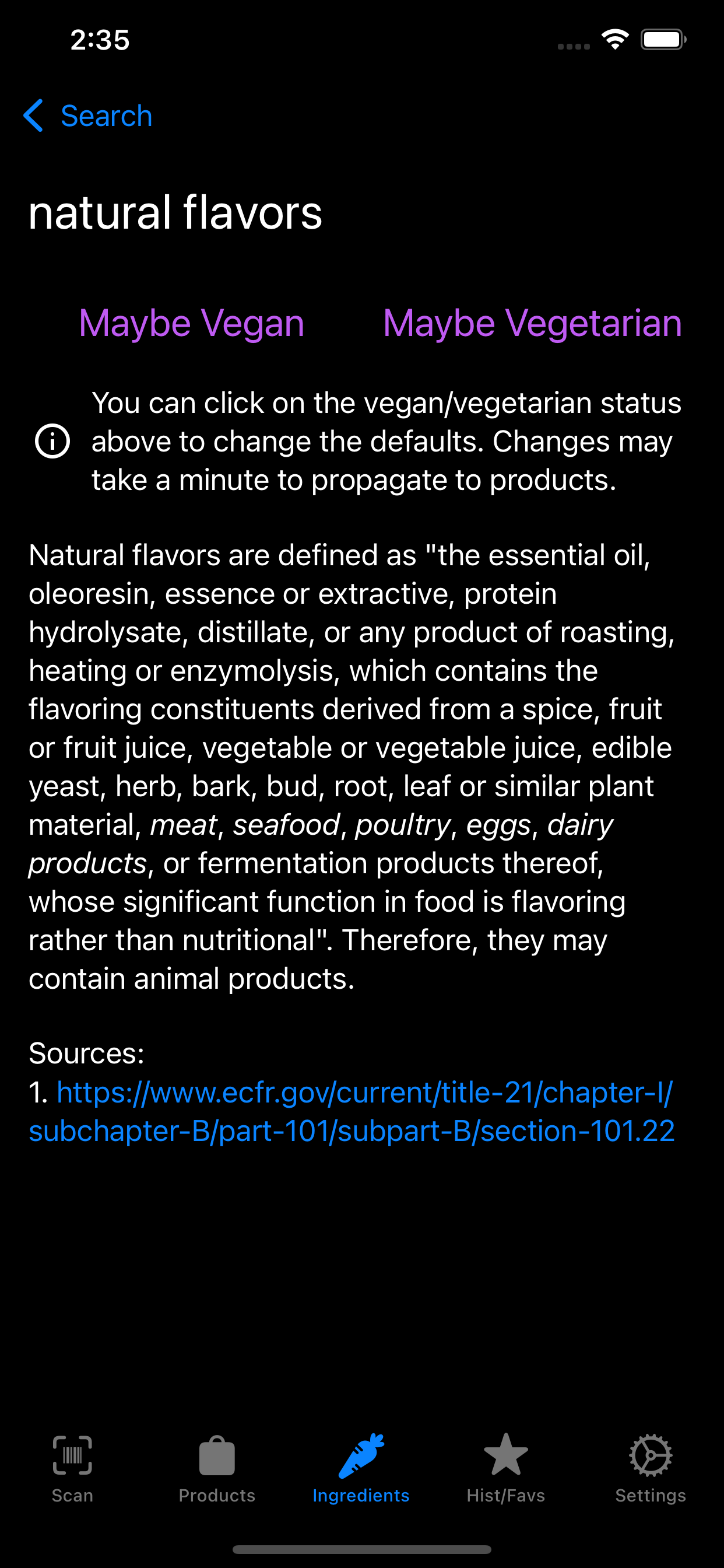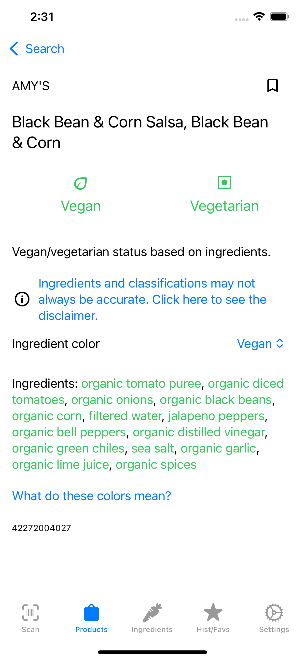 Vegandex is an Android and iOS app that allows you to scan barcodes and search products to determine if they are vegan.